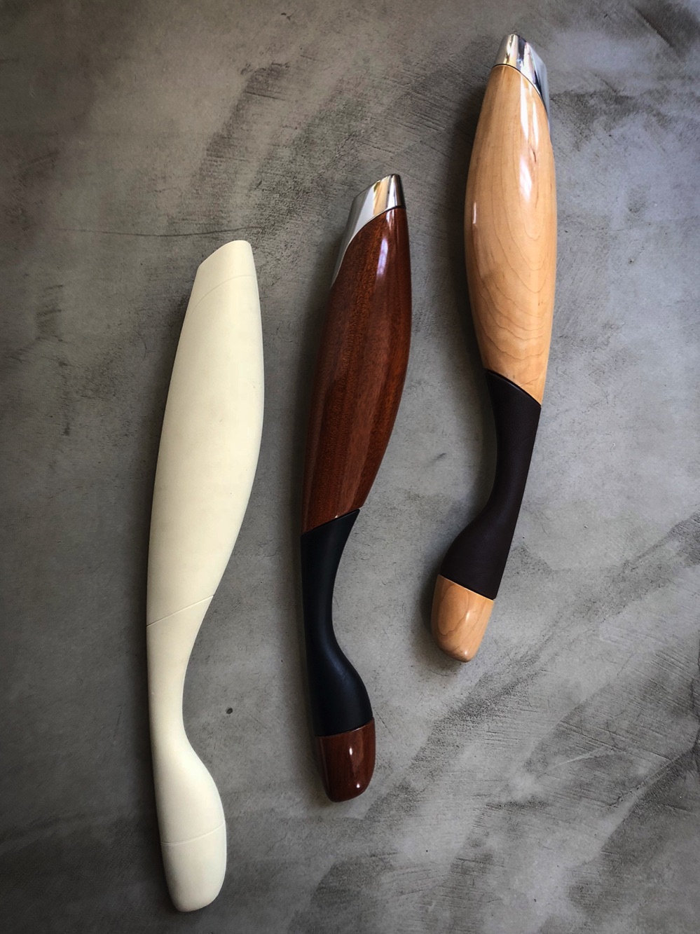 Michael DiTullo was asked to create a proposal for medals and torches for an Olympic Games. Our concept was inspired by a combination of vintage sports equipment and materials that were found in art and objects of the location of the games. While it was an honor to be asked, our proposal was not selected to move forward. Working with RPM prototyping and manufacturing we did create several working prototypes. The result was a set of beautiful one off Olympic torches that explore form, color, and material in a way that blends craft fluid modernity.