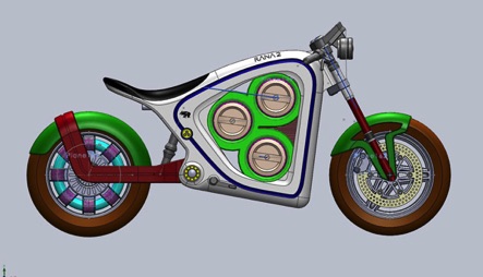 Designed around a trio of hot swapable batteries, the Rana 2 was a concept bike designed to commemorate the 25th anniversary of the original Rana designed by Hartmut Esslinger, founder of frog design, which entered the SFMoMA's permanent collection the same year.